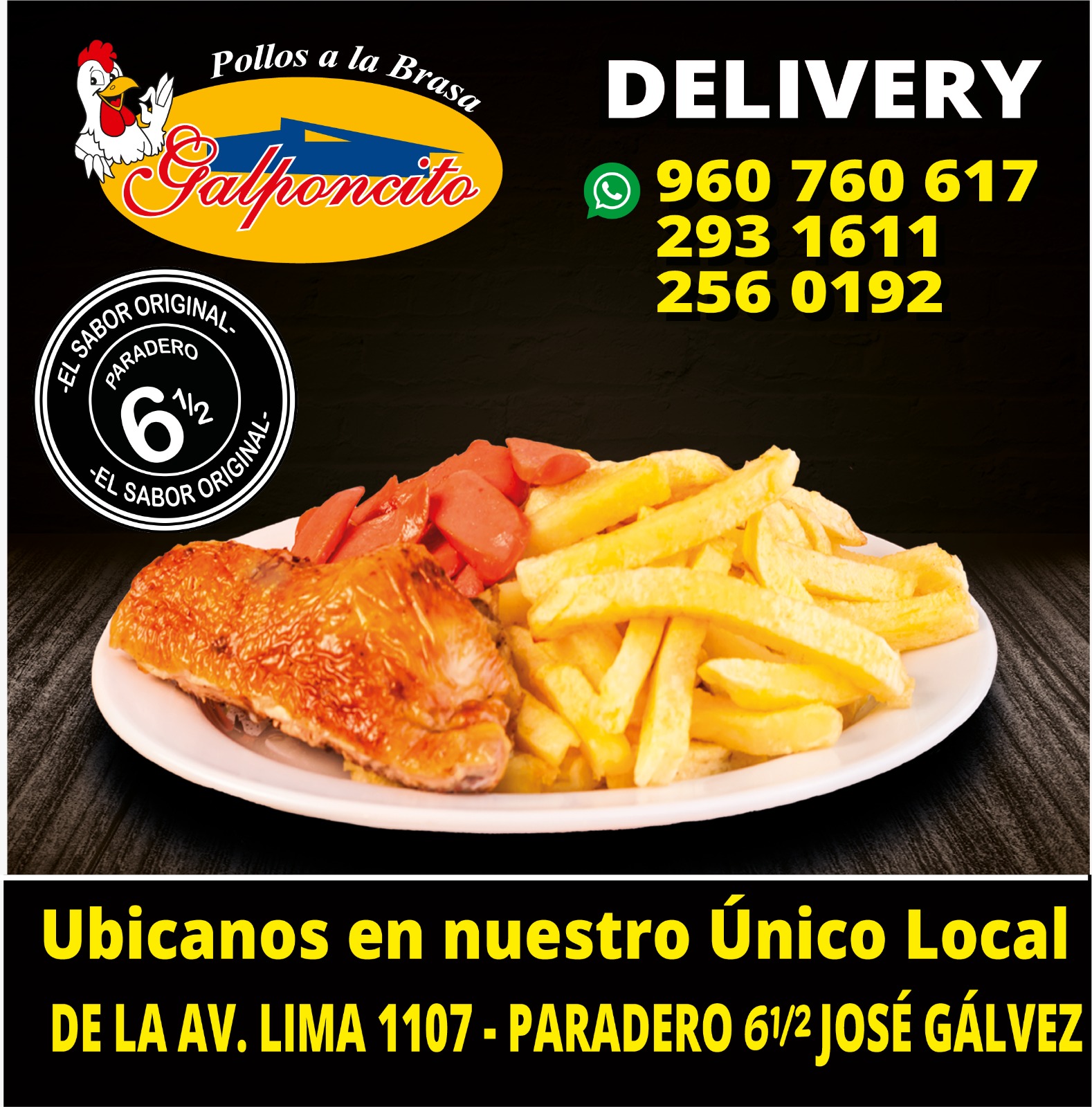 En Pollería Galponcito preparamos nuestro pollo a la brasa con una receta única y un horneado perfecto que garantiza esa piel doradita y ese sabor ahumado inconfundible que nos caracteriza en José Gálvez.